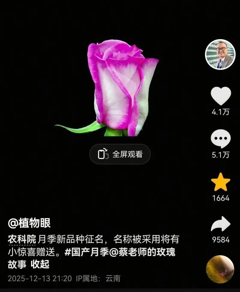 去年12月,云南省农业科学院花卉研究所委托社交账号“植物眼”,代为发布了“为4379-4新品种月季面向全网征名”的活动。